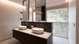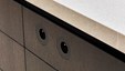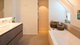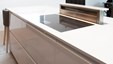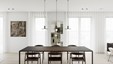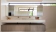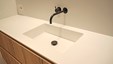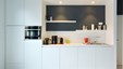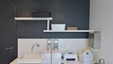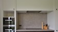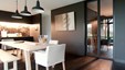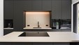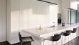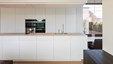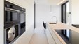 In deze charmante en elegante nieuwbouwvilla in de kempen werd de volledige inrichting tot in de puntjes afgewerkt en afgestemd op de noden van een jong hedendaags koppel. Het donkere eikfineer en het witte laminaat vormen een contrast dat in het hele huis het schrijnwerk domineert. De keuken is praktisch ingericht, met veel kastruimte en een ontbijthoek met inschuifdeuren, die volledig kan worden afgesloten. Het werkblad van geïmpregneerde natuursteen past perfect in het geheel en is makkelijk in onderhoud. Ontwerp : MVH Architectuur
