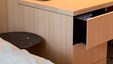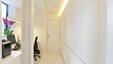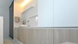 De zachte houtnerf brengt een warme touch in de nieuwe werkomgeving. De dokterskabinetten zijn mooi en zeer functioneel ingericht, met verrijdbare ladeblokken zodat de instrumenten steeds binnen handbereik blijven. Secretariaat en ontvangstbalie stralen een serene rust uit. Ook de wachtruimte biedt een warm onthaal.