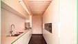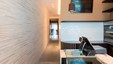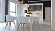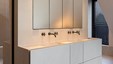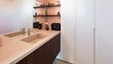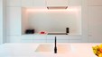 Een weekend aan zee wordt echt genieten wanneer je thuiskomt in dit warm nest. Blikvanger in het hedendaags ontwerp is de wand in balkeneik, waarbij de deuren met verdoken No-Ha greep opgaan in het geheel. Dezelfde natuureik komt ook in de andere ruimtes terug. In de badkamers wordt dit gecombineerd met naadloos verwerkte lavabo’s in Avonite solid surface en zwarte accenten. De leefruimte zoekt het contrast met wit lakwerk, zwart smeedwerk, Dekton tablet en mozaïktegels. Multimedia en verlichting werden volledig geïntegreerd, zodat iedereen volop kan genieten. De totaalrenovatie van dit kustappartement omvatte structurele werken, nieuwe technieken en interieurinrichting met gyproc en parket. Ontwerp en realisatie van totaalproject : Jos Heylen NV