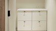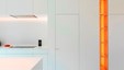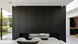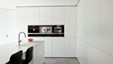 Winnend project Schrijnwerk Awards Interieurbouw. De totaalinrichting van een 30 jaar oude woning werd ontworpen door architect Dimitri Pauwels. De zuivere materialen in wit/zwart contrast worden gecombineerd met de warmte van natuurlijke eik. In het ontwerp werd ruime aandacht besteed aan ergonomie en de verdoken integratie van alle technieken. Ontwerp: Architect Dimitri Pauwels