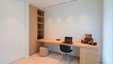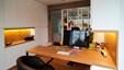 Winnend project Schrijnwerk Awards Interieurbouw 2015. De strakke interieurinrichting wordt gekenmerkt door een zeer hoog afwerkingsniveau en extreme detaillering. Het strakke ontwerp combineert zuivere materialen : ultrafijne zwarte boekenplanken en fronten in witgelakte MDF contrasteren in harmonie met de warmte van de donkere moeraseik fineer. Bij de uitvoering werd veel aandacht besteed aan de verdoken integratie van alle technieken. Ontwerp : Conix RDBM Architects.