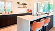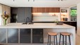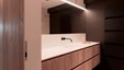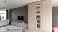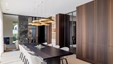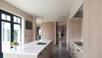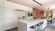 Winnend project Schrijnwerk Awards 2024 in de categorie Interieurbouw. In het sublieme ontwerp wordt lakwerk gecombineerd met warme gerookte Eucalyptus. Maatwerkgrepen in bronslak en een gedurfde marmerkeuze maken het plaatje compleet. De wijnkast in de inkomhal en de roomdivider tussen eethoek en zithoek zijn absolute blikvangers.
