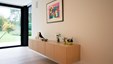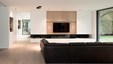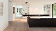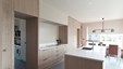 In deze nieuwbouwwoning werden landelijke elementen geïntegreerd in een interieur met een moderne toets. De geborstelde eik staat borg voor een gezellige familiale sfeer. De deuren naar berging en bureel werden verdoken in de keukenwand geïntegreerd. Ontwerp : Jos Heylen NV